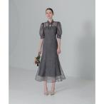 レジャ Leja スパンコール刺繍ボタニカルマーメイドケープボレロ付きプチハイネックパフスリーブキャミソール2wayチュールワンピース美脚効果ドレス結