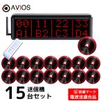 飲食店 呼び出しベル ワイヤレスチャイム 8番号表示 表示消去機能 送信機15個セット レッド レストラン カフェ テーブルチャイム 業務用 1年保証 AVIOS