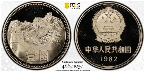 1982年 PCGS PR69DCAM プルーフ 銅製 サン-B9b 万里の長城 1元 中国コイン #43734A