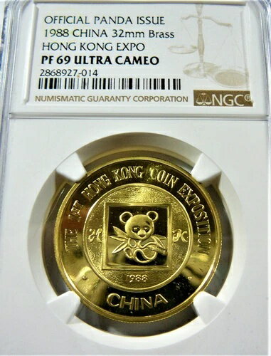 中国 1988年 香港万博 真鍮製パンダメダル NGC PF69UC