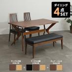ダイニングテーブルセット 4人掛け 幅150cm ダイニングチェア 2脚セット ベンチ 木製 天然木 無垢材 スチール脚