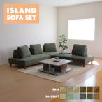 カウチソファ アイランドソファ 4点セット 3人掛け ソファ ファブリック 撥水 キズに強い 背もたれクッション 独立