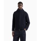 ブルゾン アウター 「エンポリオ アルマーニ」フード付きジップアップブルゾン チャンキーウール ヘリンボーン レリーフパターン メンズ