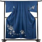 付下げ 身丈155cm 裄丈63.5cm S 袷 蒋雪英 落款あり 辻が花柄 相良刺繍 紺色 正絹 逸品 中古