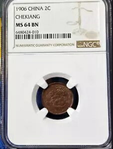 中国 1906年 チェキアン 2 現金 NGC MS 64 BN トップポップ
