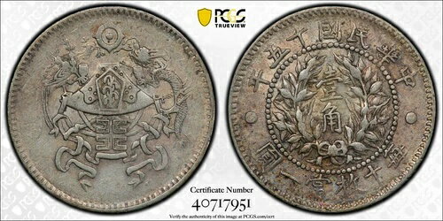 中国 龍鳳凰 10セント 1926年 銀貨 Y-334 LM-83 PCGS AU 50