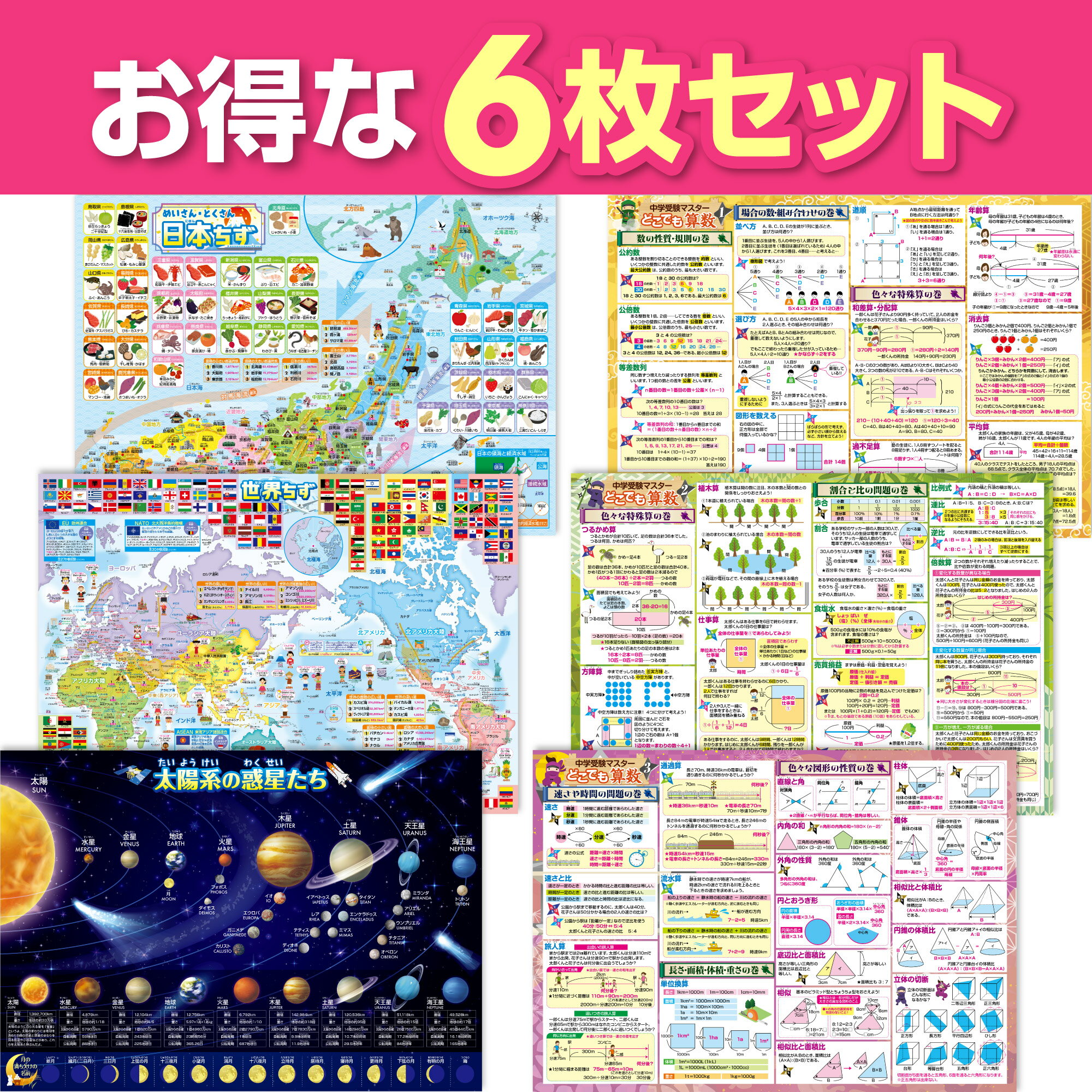 お風呂の学校 セット価格 地図/中学受験算数 お風呂ポスター2種類セット 日本製 地理 学習 知育 社会 算数 中学受験 B3サイズ 防水