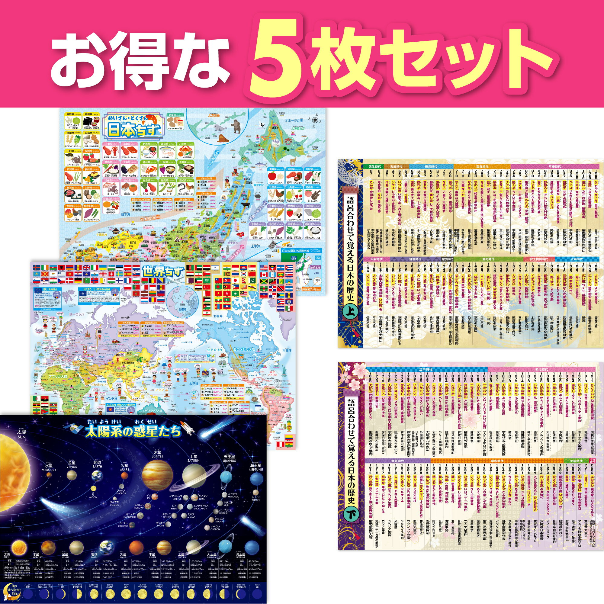 proceedx学習ポスター pro-3014 福袋9 5枚セット 中学 日本歴史 世界歴史 公民 日本地理 用語 日本製