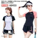 中学生 レディース 水着 体型カバー 高校生 半袖 2点セット 20代 大学生 フィットネス水着 セパレート 夏 可愛い 10代 体型カバー 30代