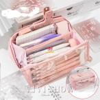 筆箱 大容量 ペンケース 手帳収納 ペンホルダー 立つ 中学生 高校生 大学生 韓国 おしゃれ 社会人 女子 男子 多機能ペン入れ 化粧ポーチ 薬ポー