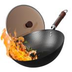 鉄製中華鍋 ガラス蓋付き 30cm 炭素鋼 フラット底 IH対応 トリプル窒化処理で高い防錆効果