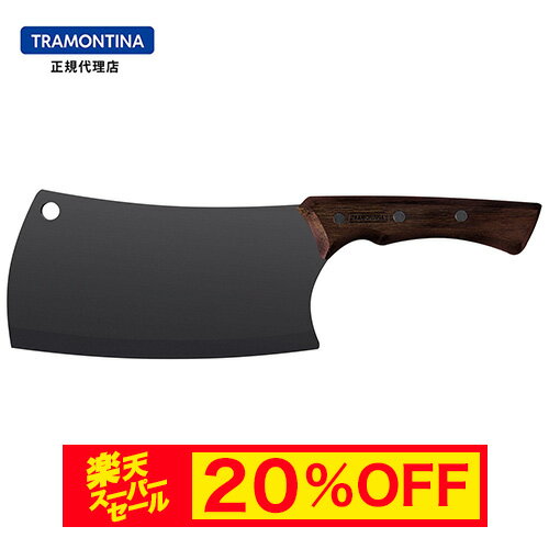 【スーパーセール 20%OFF】【送料無料】TRAMONTINA 中華包丁 シュラスコブラック 7インチ クリーバー ステンレス 両刃 木柄 トラモンティーナ【刃渡り180mm】【天然木】【包丁 よく切れる】【包丁 黒い おすすめ】