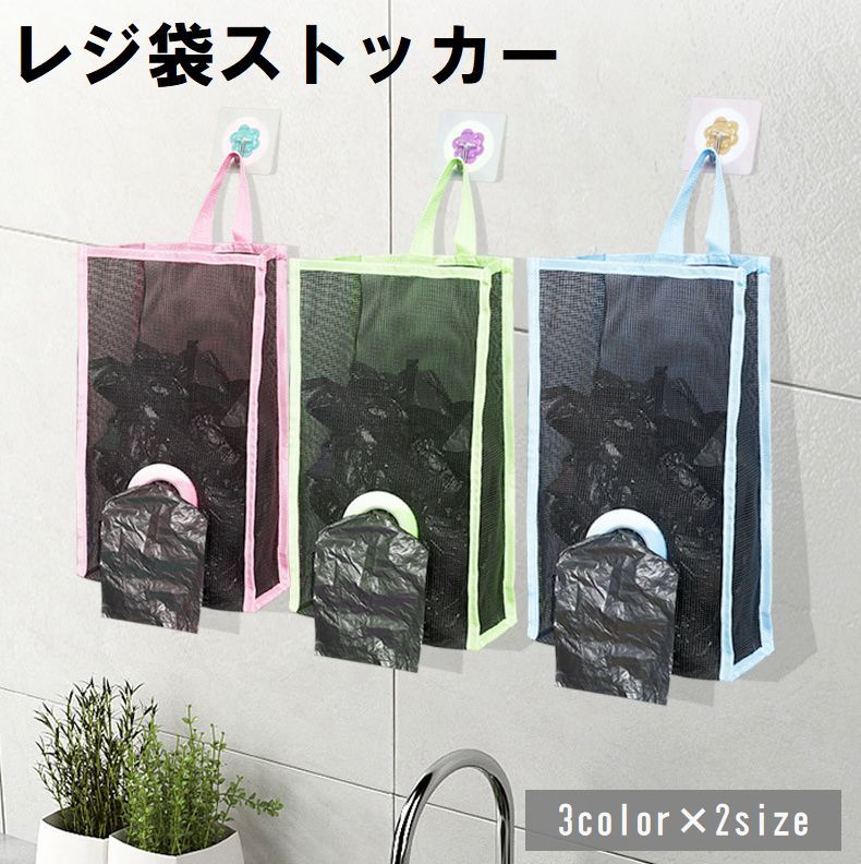 送料無料 レジ袋ストッカー キッチン収納 ポリ袋入れ ゴミ袋入れ 吊り下げ 壁掛け メッシュ 中身が見える 通気性 無地 シンプル おしゃれ