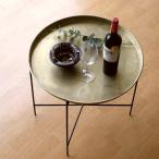 サイドテーブル 折りたたみ 丸 トレイテーブル フチあり アンティーク おしゃれ アイアン 真鍮ラウンドトレーのフォールディングテーブル