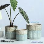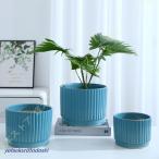 セラミック製 植木鉢 プランター 北欧 シンプル 底穴付き プラスチックトレイ付き 観葉植物鉢 縦縞 オシャレ デスクの装飾 多肉植物 サボテン 丸形