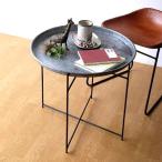 サイドテーブル 折りたたみ 丸 トレイテーブル フチあり アンティーク おしゃれ 円形 アイアンラウンドトレーのフォールディングテーブル