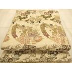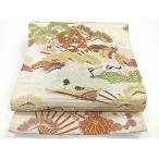 平和屋着物◎アンティーク 大正ロマン 丸帯 唐織 扇面飛鶴花文 金糸 正絹 逸品 DAAY4077jm
