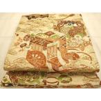 平和屋着物◎アンティーク 大正ロマン 丸帯 御所車花文 金糸 正絹 逸品 AABB1564dt