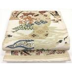 平和屋着物◎両面 丸帯 飛鶴花文 金糸 正絹 逸品 AABC1656dt