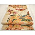 平和屋着物◎アンティーク 大正ロマン 丸帯 飛鶴花文 金糸 正絹 逸品 AABF9795uk