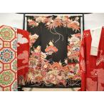 平和屋本店■極上 アンティーク 大正ロマン 振袖・長襦袢・丸帯セット 相良刺繍 駒刺繍 手描き 飛鶴風景文 黒地 金彩 逸品 CYAA1755s5