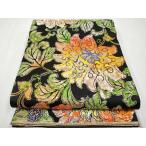 平和屋本店■最高級 龍村平蔵製 丸帯 追粉菊錦 黒地 金糸 正絹 逸品 4kk10085