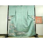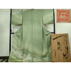久保田一竹 国内手縫いお仕立て付き 一竹工房 一竹辻が花 訪問着 銀糸の植物地紋生地 青緑色 送料込み