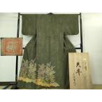 久保田一竹 訪問着 フルオーダー手縫いお仕立て付き 逸品 二代目久保田一竹 一竹辻が花 銀通し加工生地 深緑色 身長175cmまで、裄75.5cmま