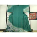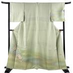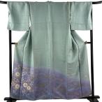 付下げ 身丈156.5cm 裄丈70.5cm L 袷 二代目 久保田一竹 落款あり 辻が花 金通し ぼかし 薄緑 正絹 逸品 中古