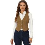 Allegra K デニムベスト ジーンズジャケット Vネック ボタンダウン ノースリーブ カジュアル レディース ブラウン XS