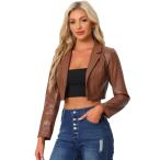 Allegra K クロップドブレザー モトPUジャケット ノッチドラペルカラー シングルブレスト フェイクレザー レディース ブラウン M
