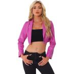 Allegra K クロップドブレザー モトPUジャケット ノッチドラペルカラー シングルブレスト フェイクレザー レディース ホットピンク L