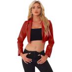 Allegra K クロップドブレザー モトPUジャケット ノッチドラペルカラー シングルブレスト フェイクレザー レディース ブルゴーニュ L