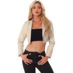 Allegra K クロップドブレザー モトPUジャケット ノッチドラペルカラー シングルブレスト フェイクレザー レディース アプリコット L