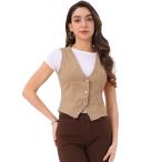 Allegra K デニムベスト ジーンズジャケット Vネック ボタンダウン ノースリーブ カジュアル レディース カーキ XS