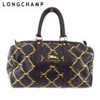 【バレンタインSALE★30%OFF】ロンシャン ボストンバッグ ハンドバッグ バッグ レディース メンズ 馬 ホース 乗馬マーク ブラウン ベージュ ゴールド 中古
