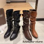 ジョッキーブーツ ロング レディース 長靴 乗馬靴 長ブーツ 大きいサイズ ブーツ ハイヒール くしゅくしゅブーツ 太ヒール 履き口 ゆったり 歩きやすい