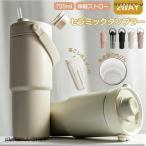 セラミック タンブラー 水筒 タンブラー ストロー付き 持ち運び おしゃれ 蓋付き こぼれない 735ml 大容量 保温保冷 真空断熱 おしゃれ マグボトル コーヒー