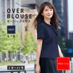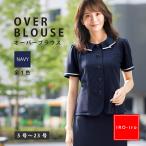 オーバーブラウス 半袖 柔らかい 抗ウイルス加工 二重ポケット 事務服 ネイビー 春夏 ストレッチ 涼しい オフィス ユニフォーム 制服 事務
