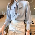 ブラウス レディース シルクシャツ リボンシャツ ワイシャツ オフィス 長袖 無地 スーツ インナー 通勤 ビジネス 就活 大 事務服