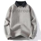 セーター メンズ ニット ビジネス 冬 長袖シャツ 襟付き おしゃれ プルオーバーセーター フェイクレイヤード 秋 秋服 冬 冬服 暖かい