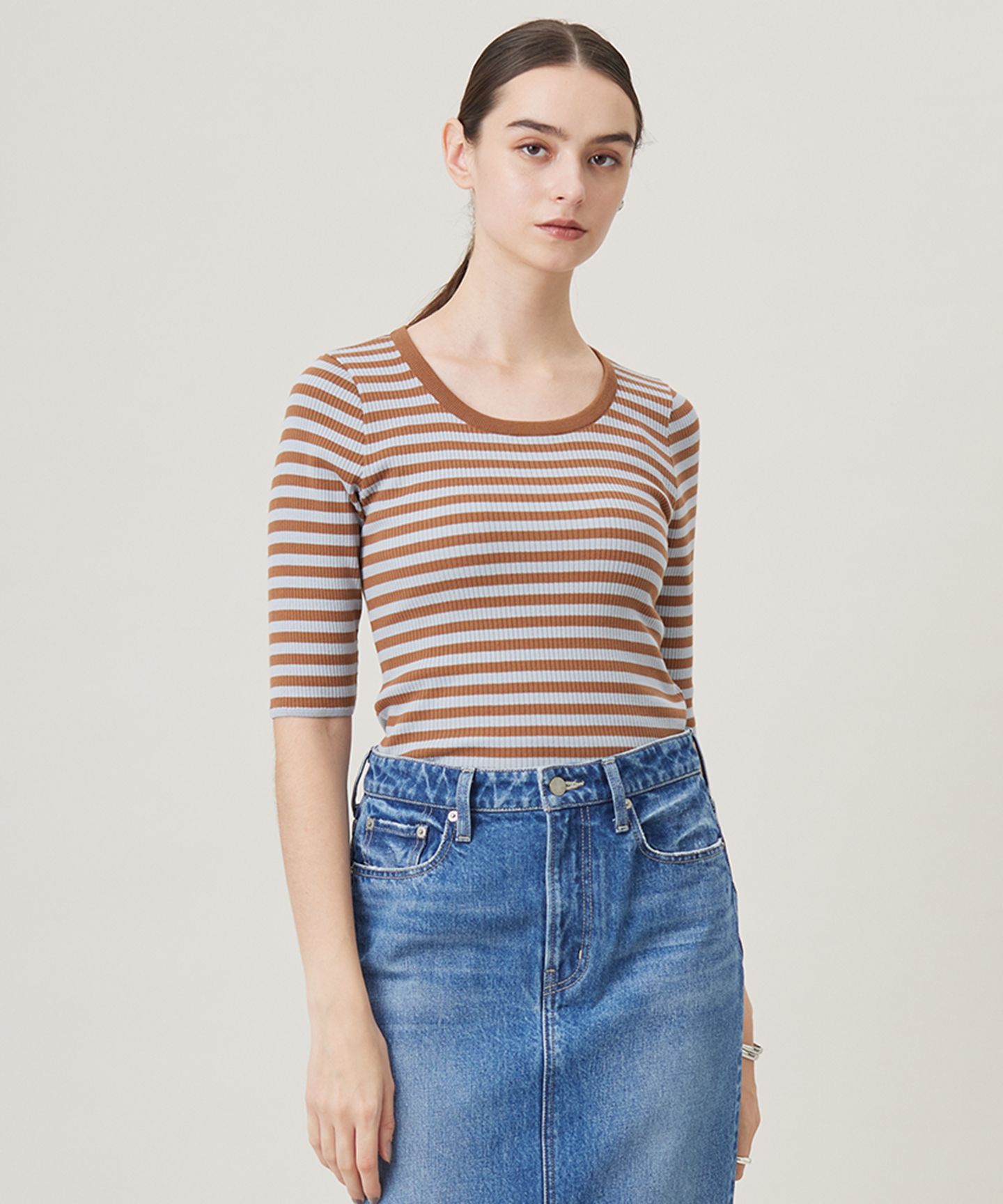 23区(ニジュウサンク)/【洗える】サステナブルウール モックネック 5分袖 ニット