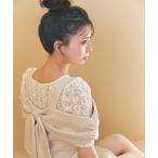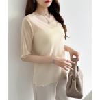 tシャツ 9分袖 ハイネック 衿レースシャーリング インナープルオーバー レディース