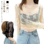 インナー 付け袖 薄手 五分袖 細見え 二の腕 レイヤード レース 透け感 半袖 フリル袖 隠し 重ね着 フリル Tシャツ ショート丈 トップス シア