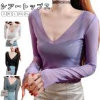 シアートップス シアー トップス 長袖 涼しい カットソー Vネック シアーTシャツ 薄手 五分袖 インナー ロンT シースルー おしゃれ 重ね着 透