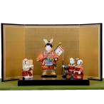 五月人形 木目込人形 桃太郎と家来 原孝洲 絹しけ屏風