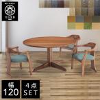 幅120cm 丸テーブル 天然木 ダイニングテーブル 4点セット 無垢 大川家具