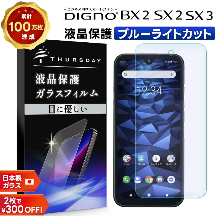 【14日20時〜4時間限定15%OFFクーポン】 DIGNO SX3 KYG02 DIGNO BX2 DIGNO SX2 KC-S302 ブルーライトカット ガラスフィルム 2枚セット 強化ガラス 液晶保護 飛散防止 指紋防止 ディグノ SoftBank SIMフリー ソフトバンク 法人向けスマートフォン 京セラ kyocera スマホ 画
