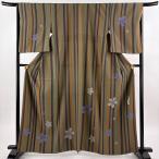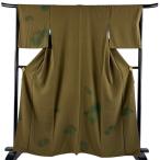 美品 付下げ 身丈162cm 裄丈67cm M 袷 辻村ジュサブロー 落款あり 絵馬 ふくろう 茶緑色 正絹 逸品 中古