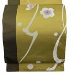 美品 袋帯 逸品 辻村ジュサブロー 落款あり 関西仕立て 枝梅 抹茶色 六通 正絹 中古